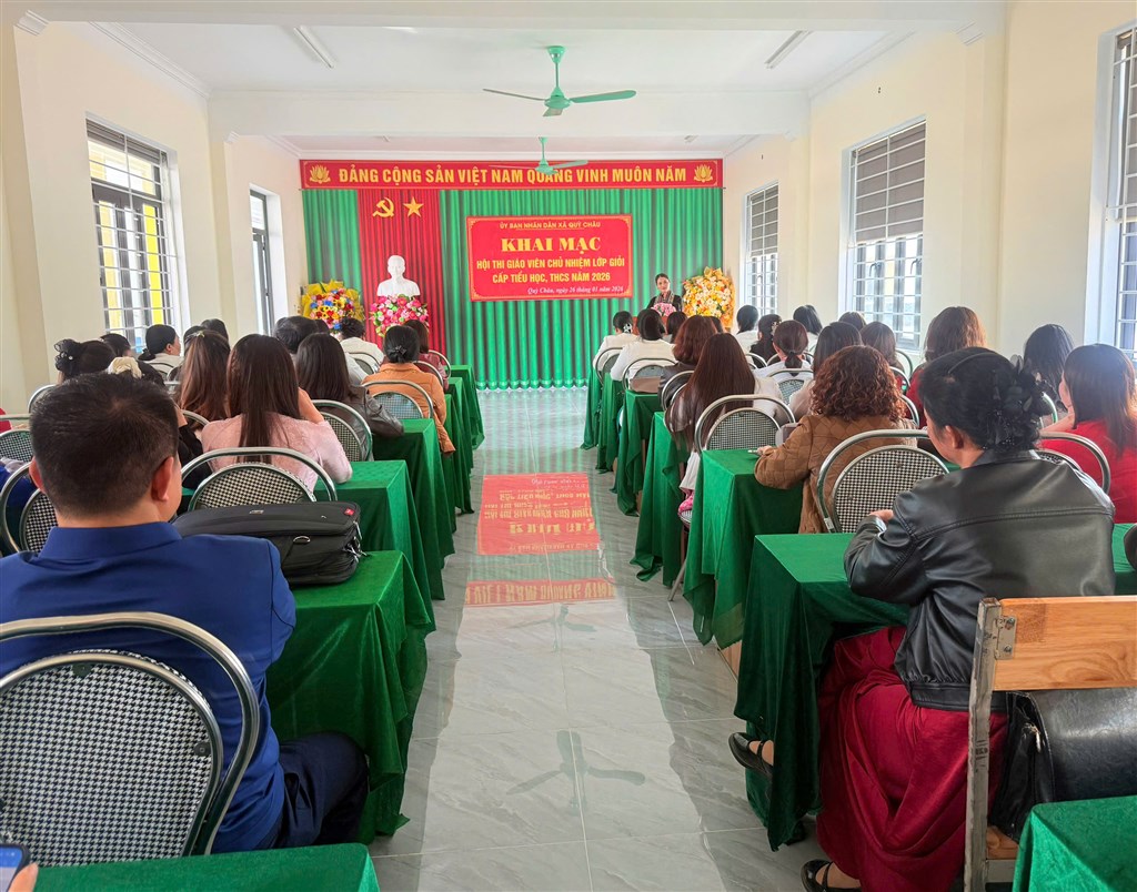 Chiều ngày 26/01/2026, UBND xã Quỳ Châu tổ chức khai mạc Hội thi Giáo viên chủ nhiệm lớp giỏi cấp Tiểu học, THCS xã Quỳ Châu năm 2026. Tham dự lễ khai mạc có đồng chí Nguyễn Thị Bình – Ủy viên Ban Chấp hành Đảng ủy, Trưởng Phòng Văn hóa – Xã hội xã Quỳ Châu; cùng dự có chuyên viên phụ trách lĩnh vực giáo dục Phòng Văn hóa – Xã hội; đại diện Ban Tổ chức, Ban Giám khảo Hội thi; lãnh đạo các trường Tiểu học, THCS trên địa bàn và các giáo viên tham gia Hội thi.